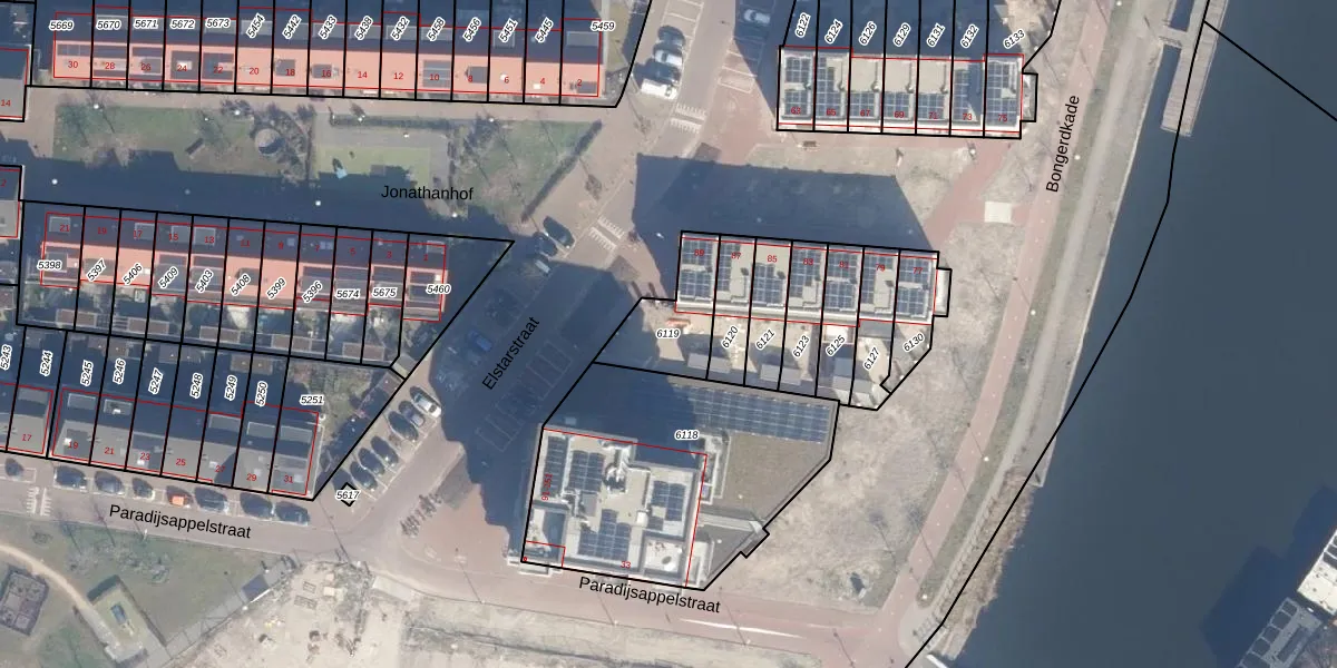 Gebruik de zoekbalk of klik op een perceel om informatie over het perceel te bekijken.