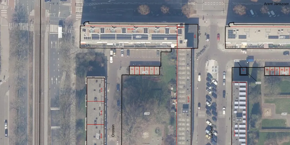 Gebruik de zoekbalk of klik op een perceel om informatie over het perceel te bekijken.