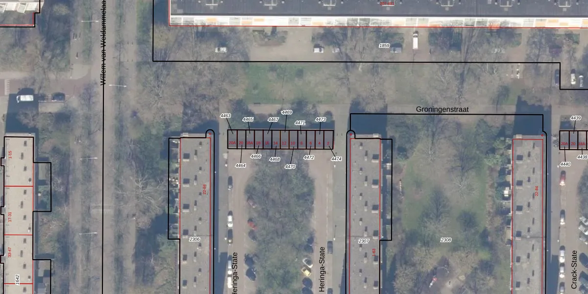 Gebruik de zoekbalk of klik op een perceel om informatie over het perceel te bekijken.