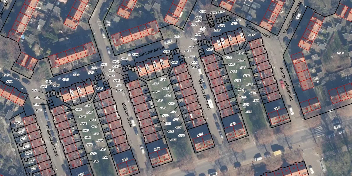 Gebruik de zoekbalk of klik op een perceel om informatie over het perceel te bekijken.