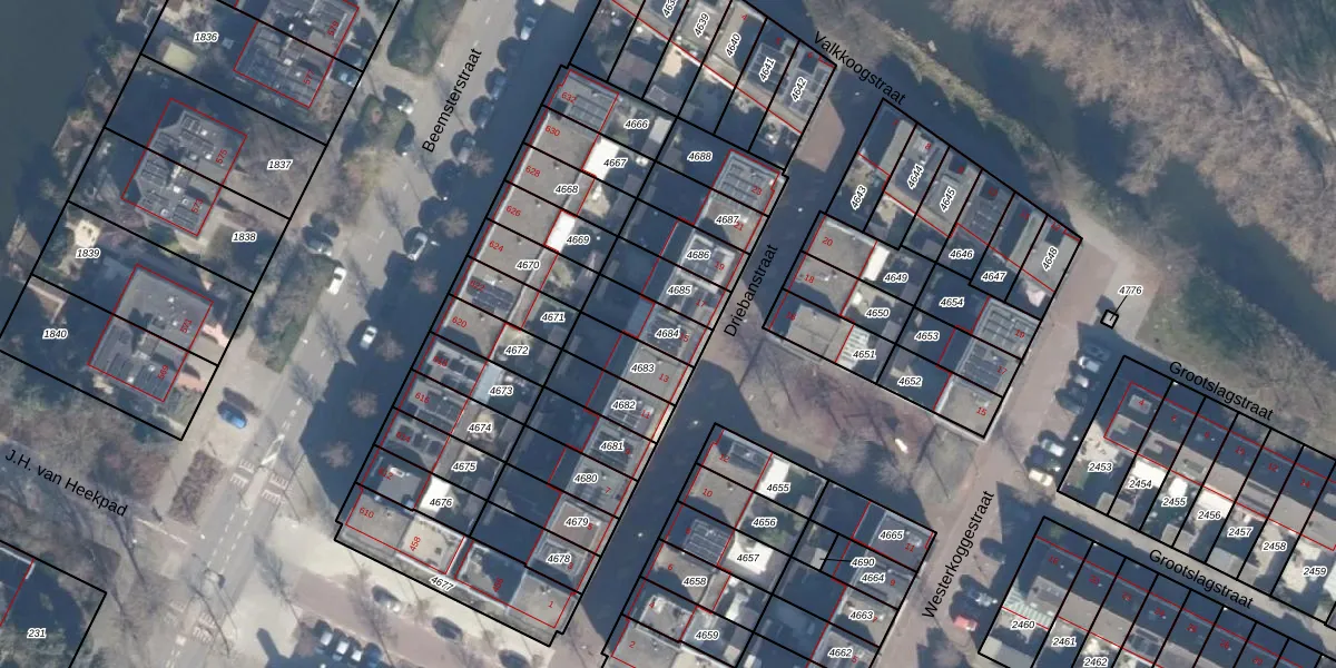 Gebruik de zoekbalk of klik op een perceel om informatie over het perceel te bekijken.