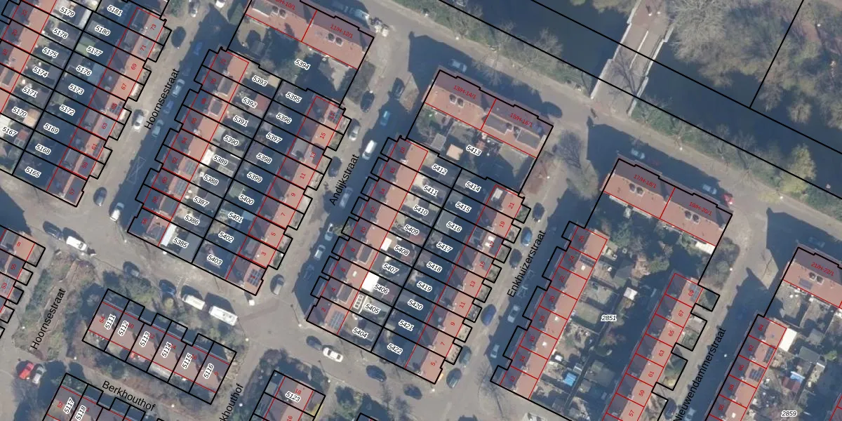Gebruik de zoekbalk of klik op een perceel om informatie over het perceel te bekijken.