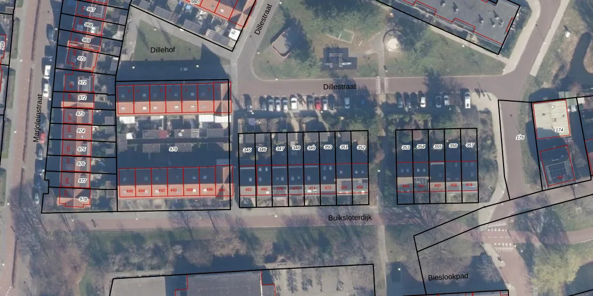 Gebruik de zoekbalk of klik op een perceel om informatie over het perceel te bekijken.