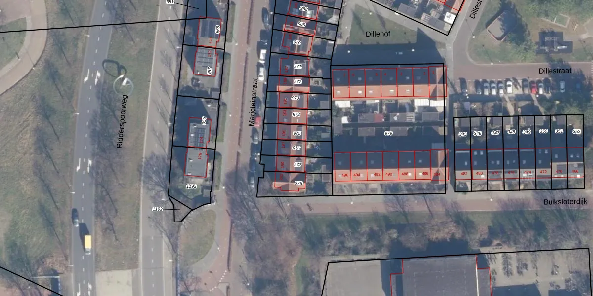 Gebruik de zoekbalk of klik op een perceel om informatie over het perceel te bekijken.