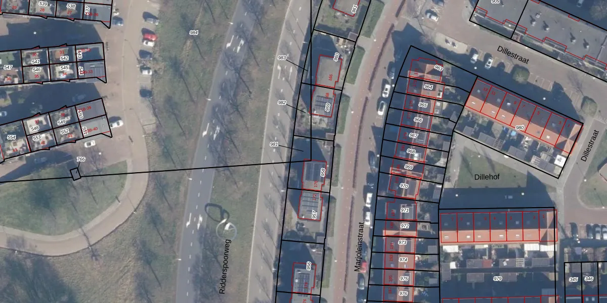 Gebruik de zoekbalk of klik op een perceel om informatie over het perceel te bekijken.