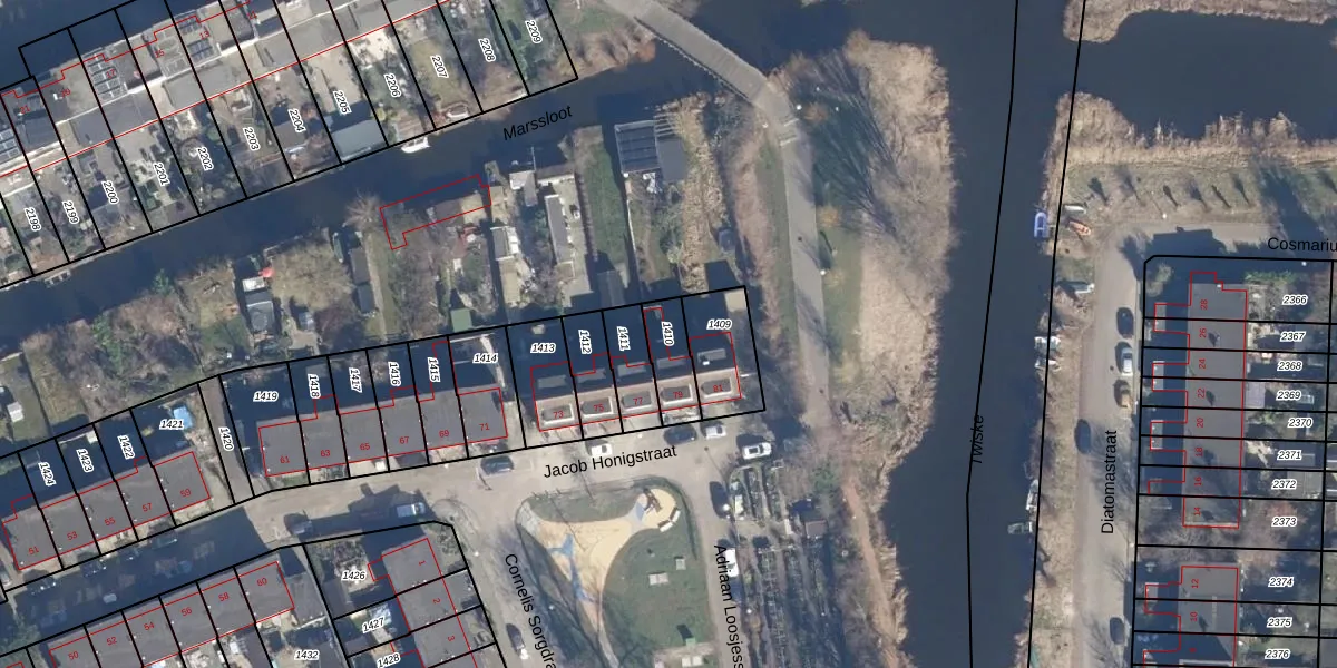 Gebruik de zoekbalk of klik op een perceel om informatie over het perceel te bekijken.