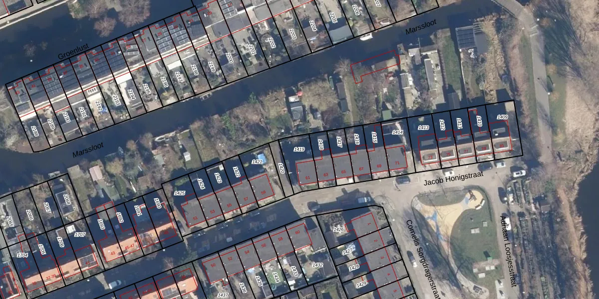 Gebruik de zoekbalk of klik op een perceel om informatie over het perceel te bekijken.