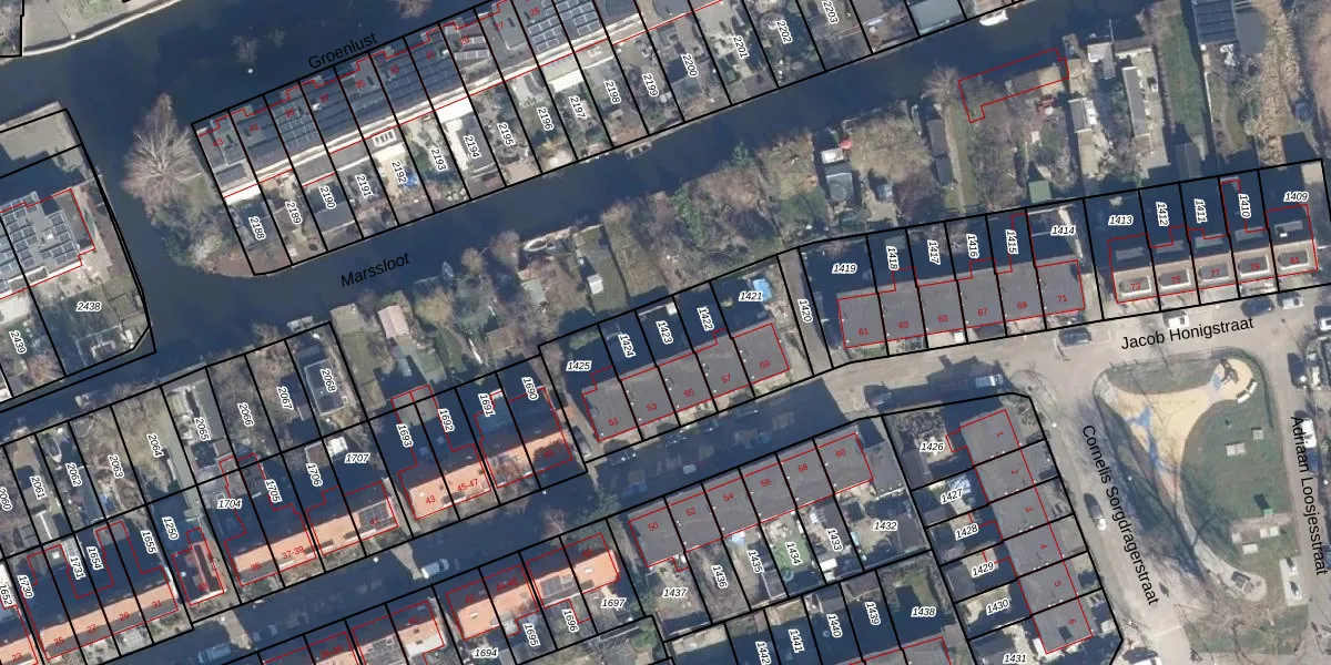 Gebruik de zoekbalk of klik op een perceel om informatie over het perceel te bekijken.