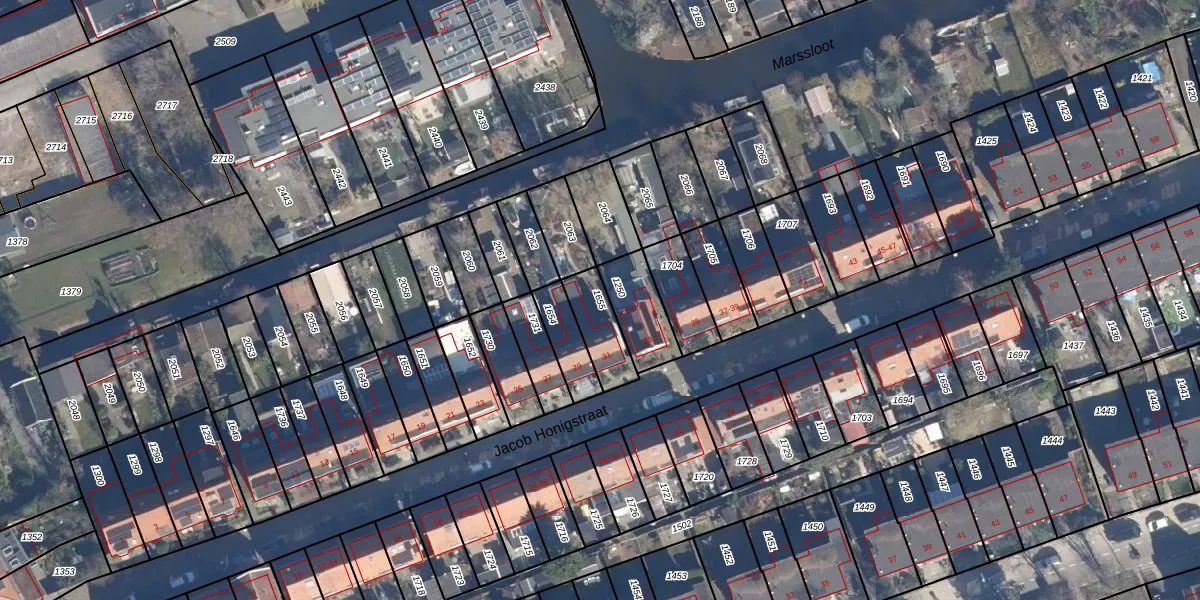 Gebruik de zoekbalk of klik op een perceel om informatie over het perceel te bekijken.