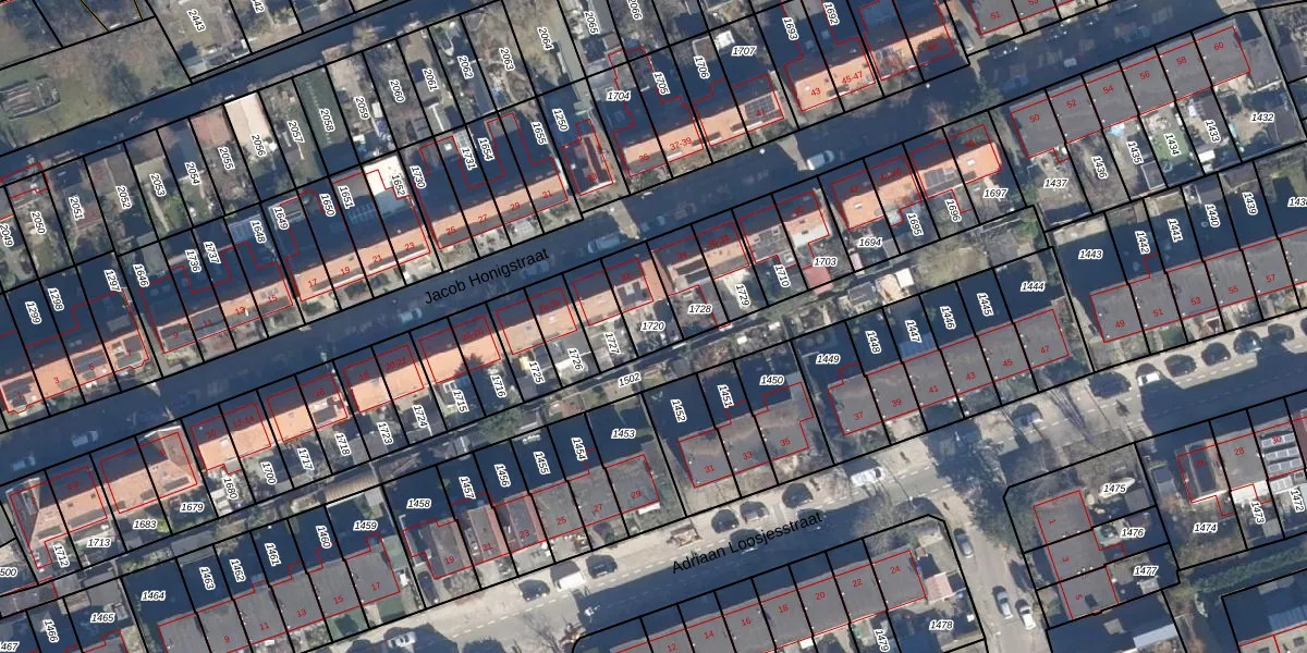 Gebruik de zoekbalk of klik op een perceel om informatie over het perceel te bekijken.