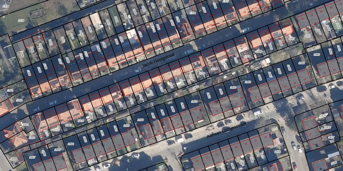 Gebruik de zoekbalk of klik op een perceel om informatie over het perceel te bekijken.