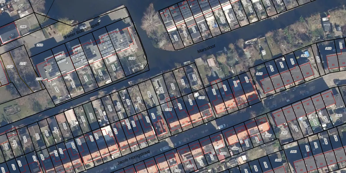 Gebruik de zoekbalk of klik op een perceel om informatie over het perceel te bekijken.