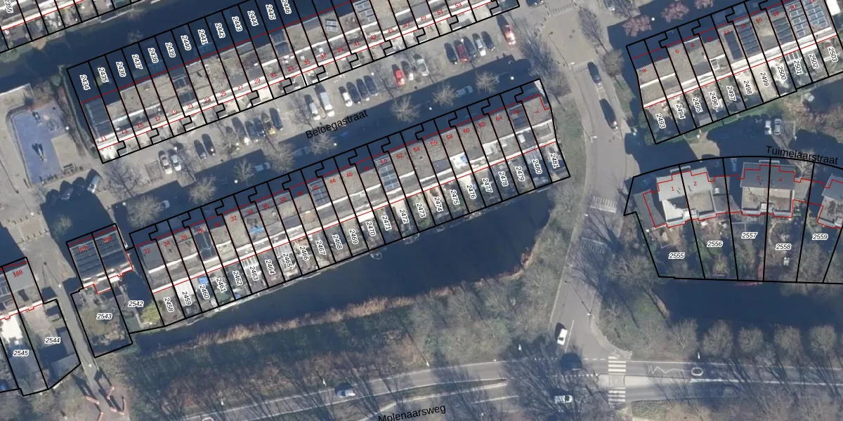 Gebruik de zoekbalk of klik op een perceel om informatie over het perceel te bekijken.