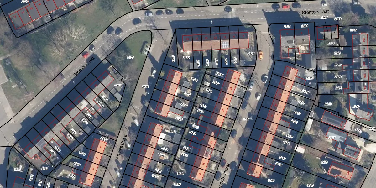 Gebruik de zoekbalk of klik op een perceel om informatie over het perceel te bekijken.