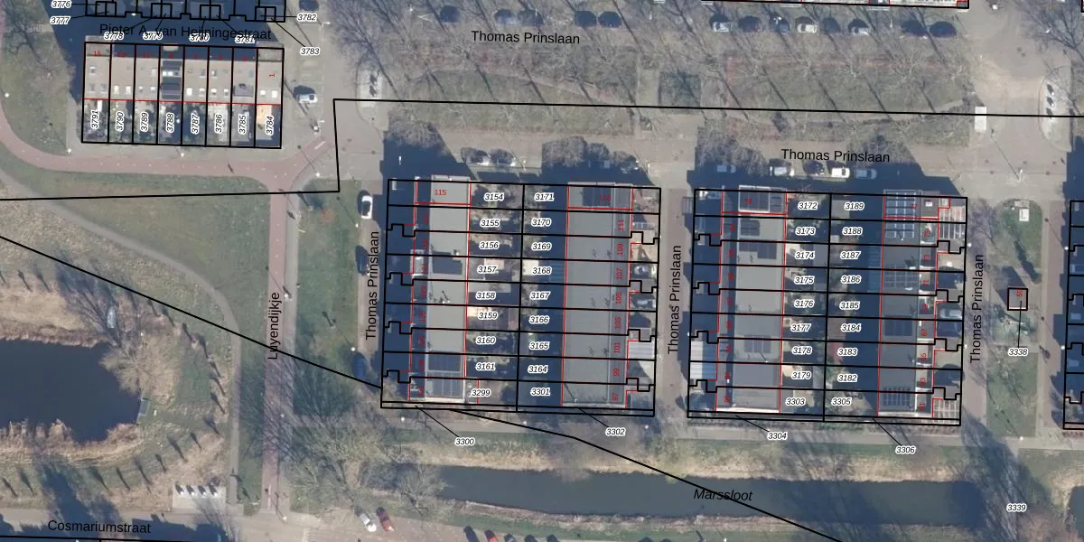 Gebruik de zoekbalk of klik op een perceel om informatie over het perceel te bekijken.
