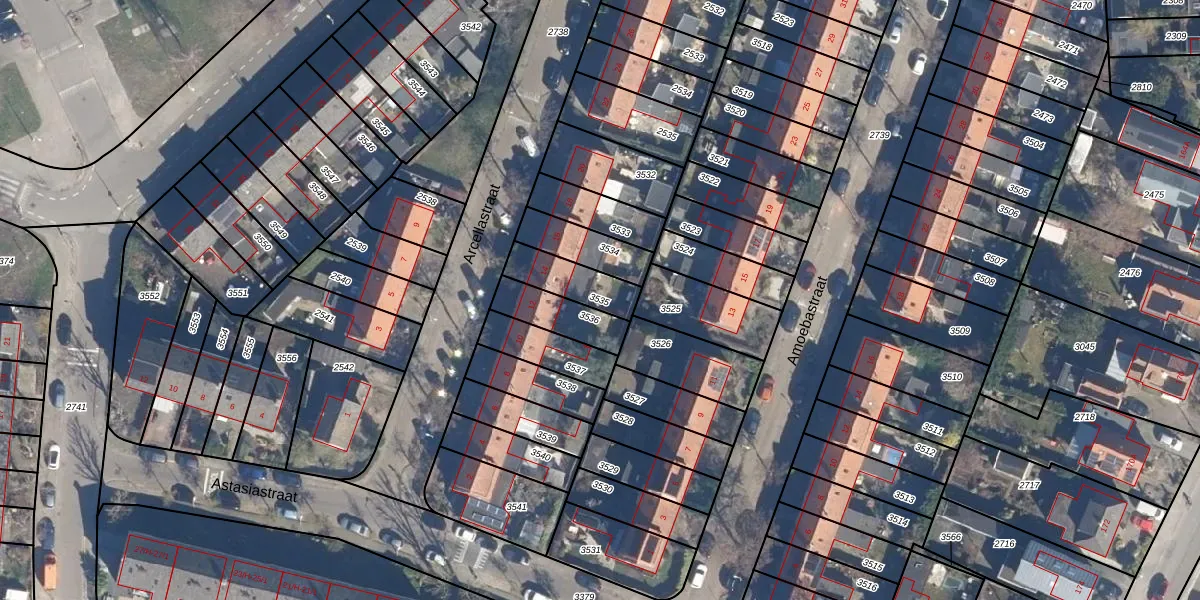Gebruik de zoekbalk of klik op een perceel om informatie over het perceel te bekijken.