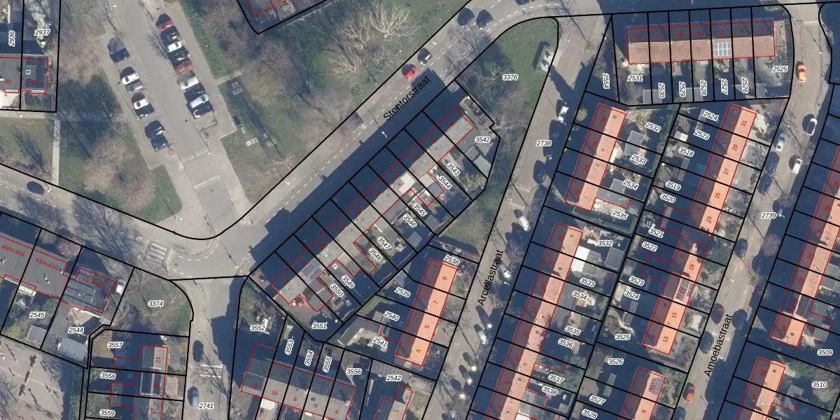 Gebruik de zoekbalk of klik op een perceel om informatie over het perceel te bekijken.