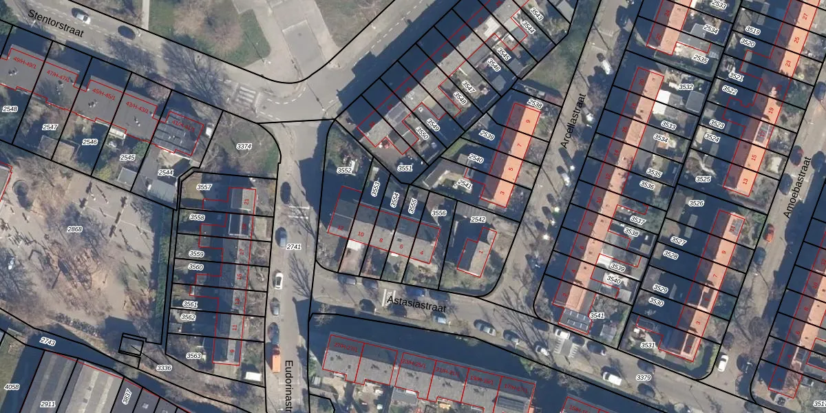 Gebruik de zoekbalk of klik op een perceel om informatie over het perceel te bekijken.