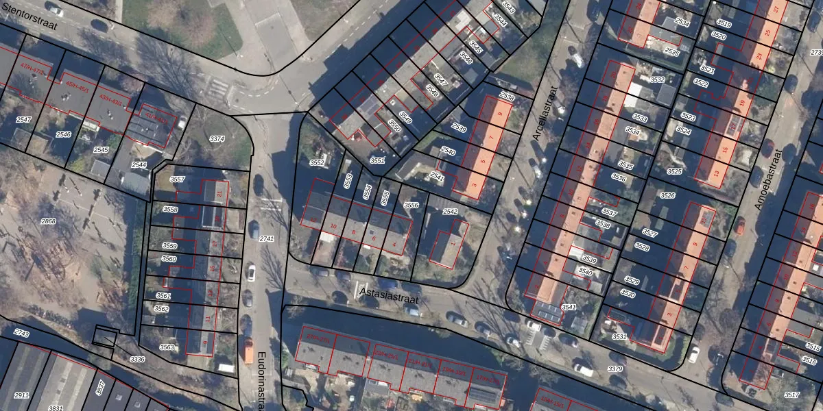 Gebruik de zoekbalk of klik op een perceel om informatie over het perceel te bekijken.