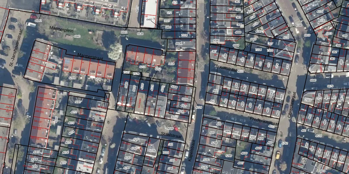 Gebruik de zoekbalk of klik op een perceel om informatie over het perceel te bekijken.