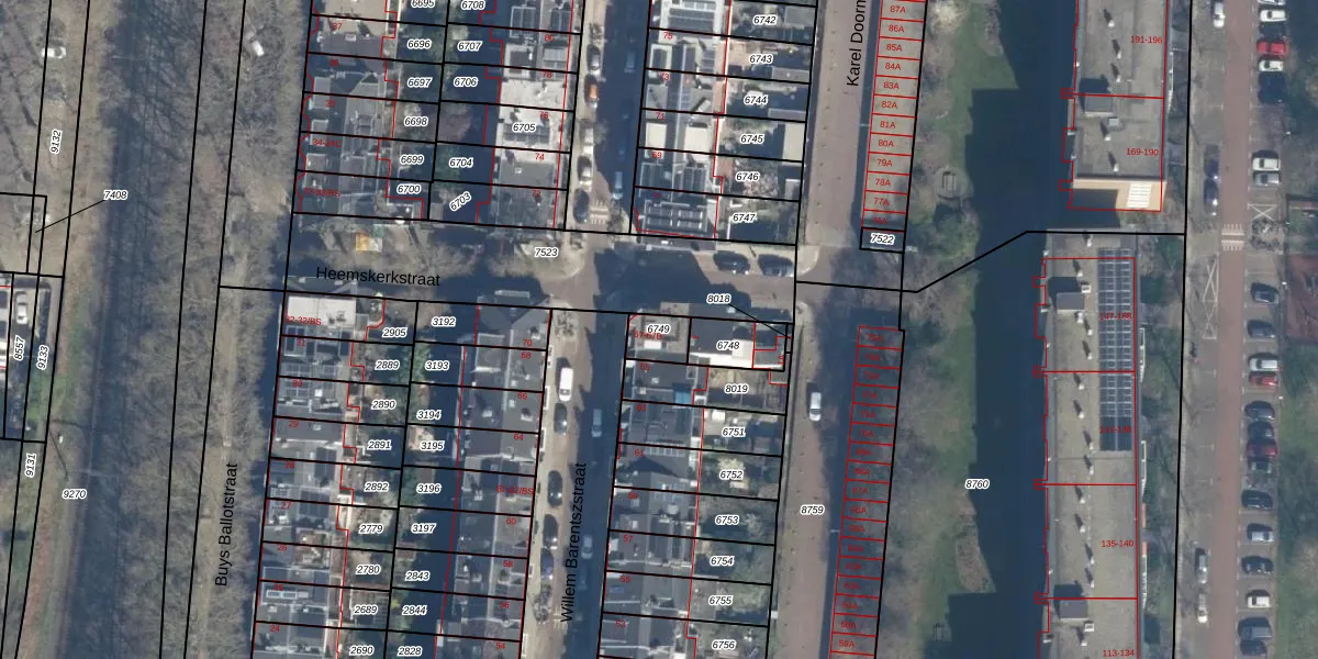 Gebruik de zoekbalk of klik op een perceel om informatie over het perceel te bekijken.