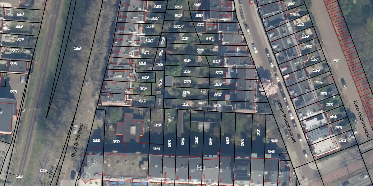 Gebruik de zoekbalk of klik op een perceel om informatie over het perceel te bekijken.