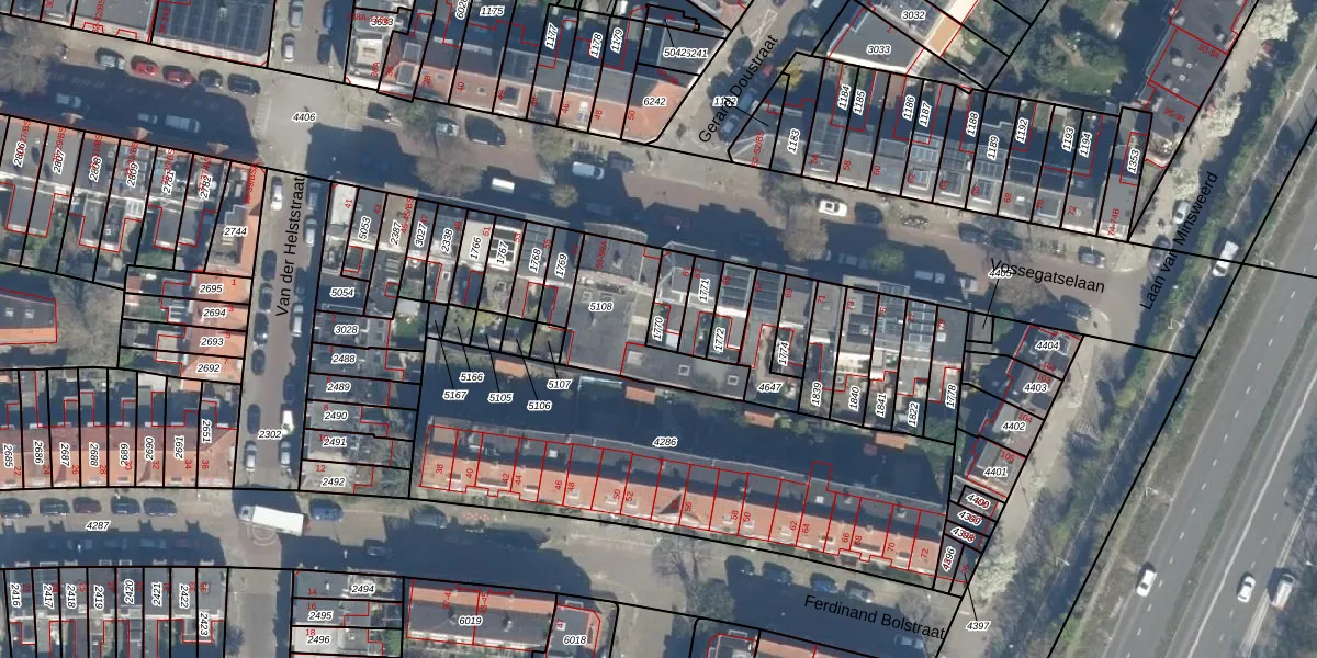 Gebruik de zoekbalk of klik op een perceel om informatie over het perceel te bekijken.