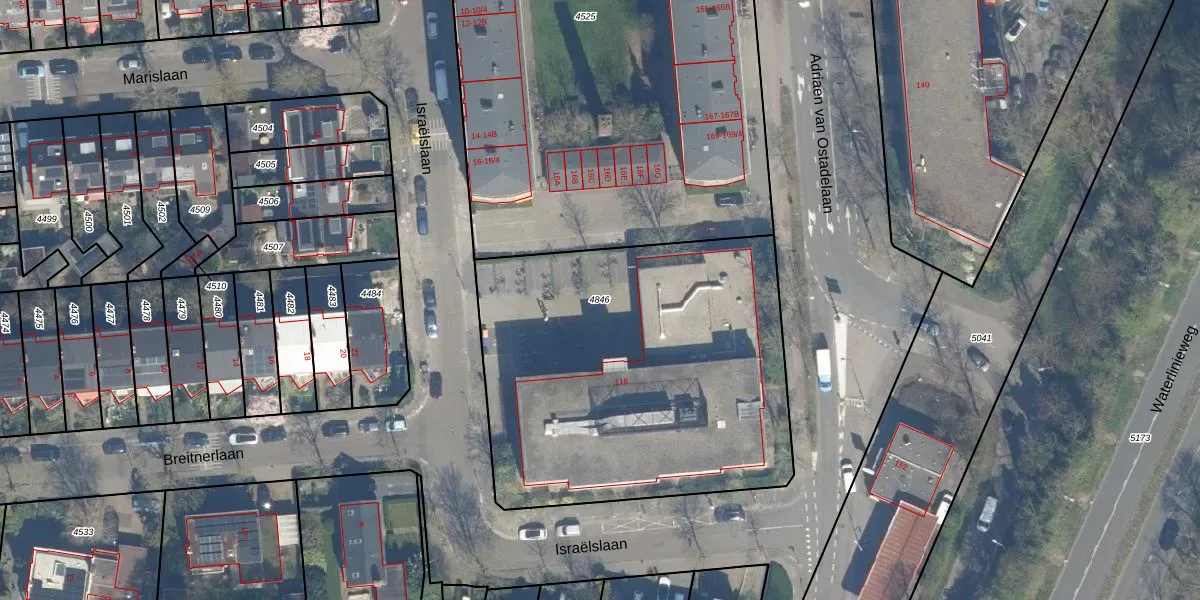 Gebruik de zoekbalk of klik op een perceel om informatie over het perceel te bekijken.