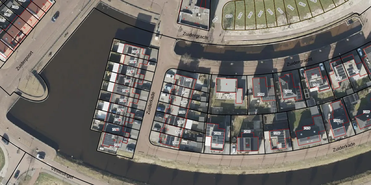 Gebruik de zoekbalk of klik op een perceel om informatie over het perceel te bekijken.