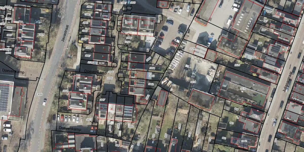 Gebruik de zoekbalk of klik op een perceel om informatie over het perceel te bekijken.