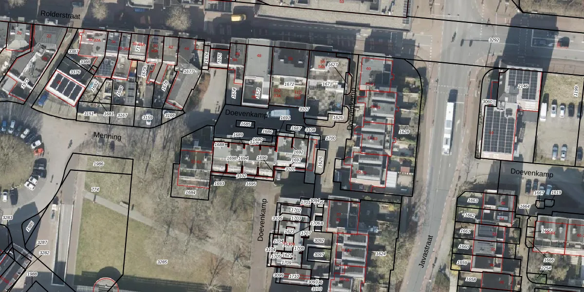 Gebruik de zoekbalk of klik op een perceel om informatie over het perceel te bekijken.