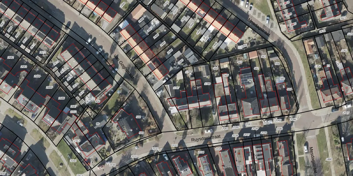 Gebruik de zoekbalk of klik op een perceel om informatie over het perceel te bekijken.