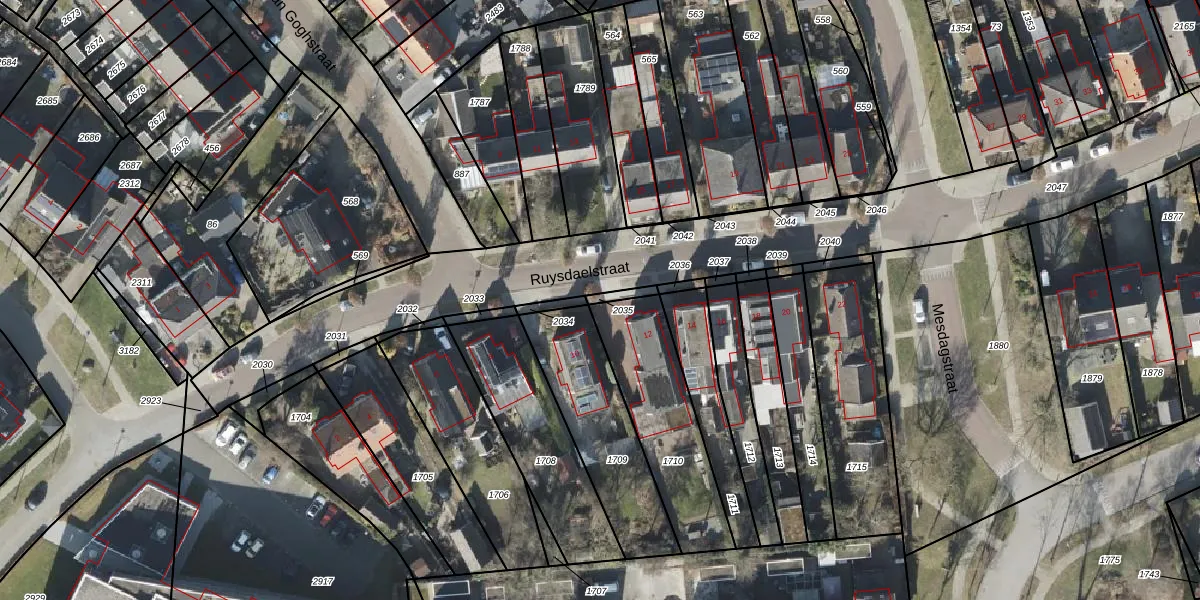Gebruik de zoekbalk of klik op een perceel om informatie over het perceel te bekijken.
