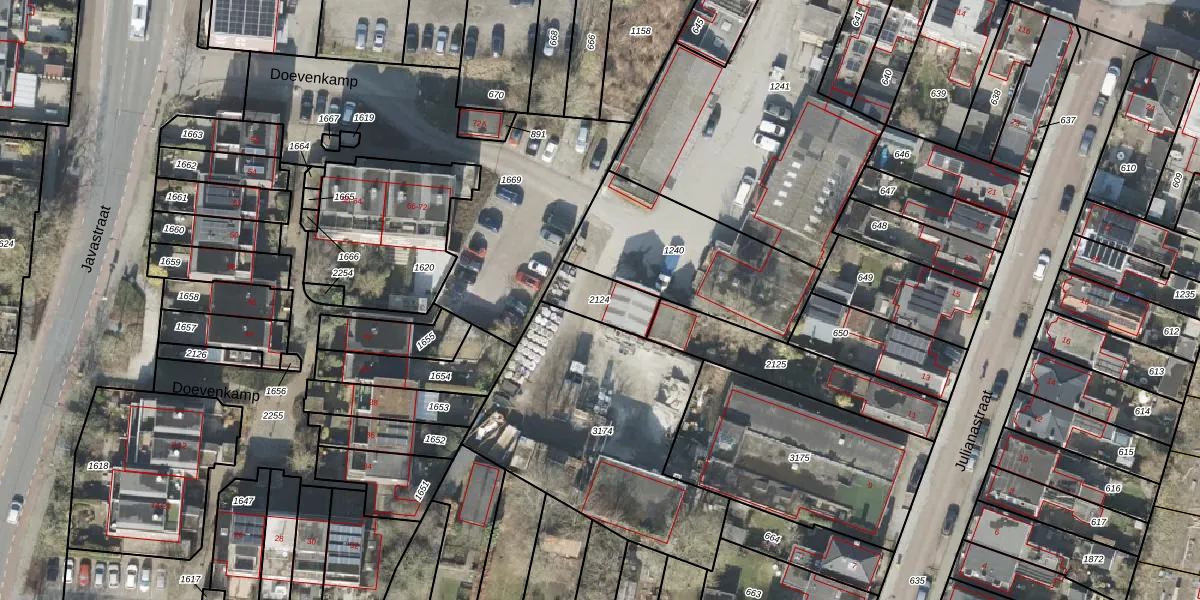 Gebruik de zoekbalk of klik op een perceel om informatie over het perceel te bekijken.