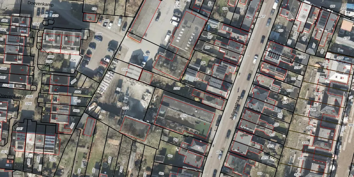 Gebruik de zoekbalk of klik op een perceel om informatie over het perceel te bekijken.