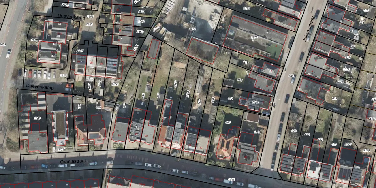 Gebruik de zoekbalk of klik op een perceel om informatie over het perceel te bekijken.