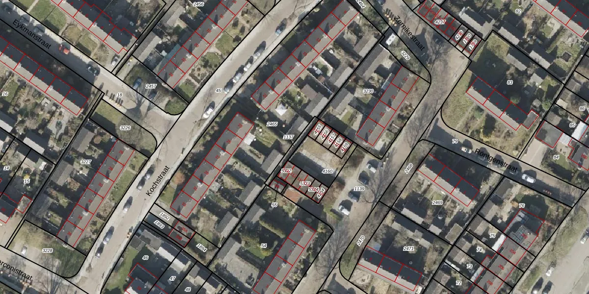 Gebruik de zoekbalk of klik op een perceel om informatie over het perceel te bekijken.