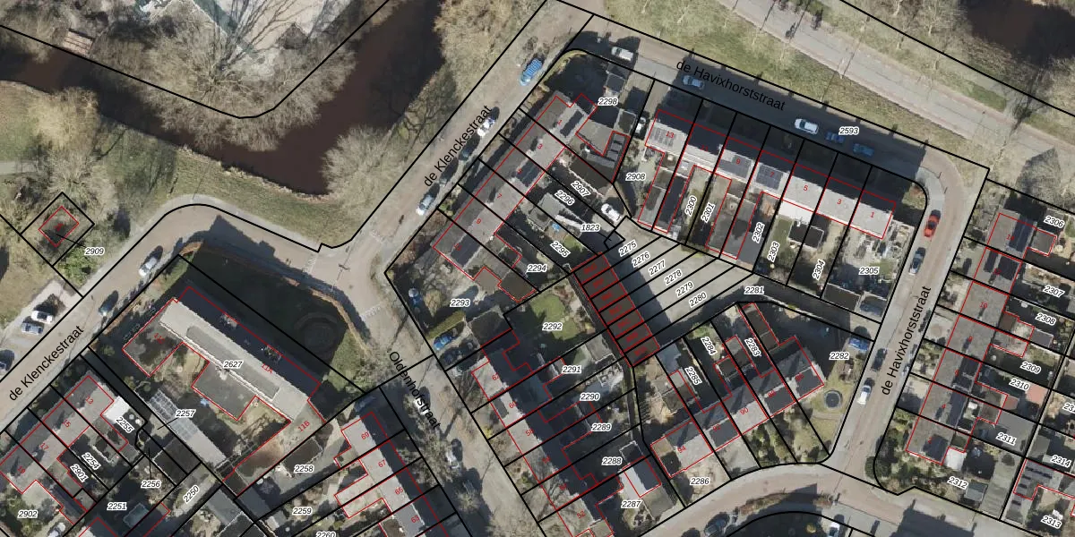 Gebruik de zoekbalk of klik op een perceel om informatie over het perceel te bekijken.
