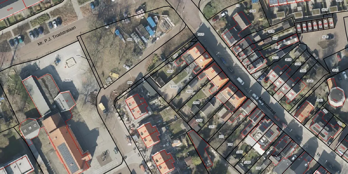 Gebruik de zoekbalk of klik op een perceel om informatie over het perceel te bekijken.