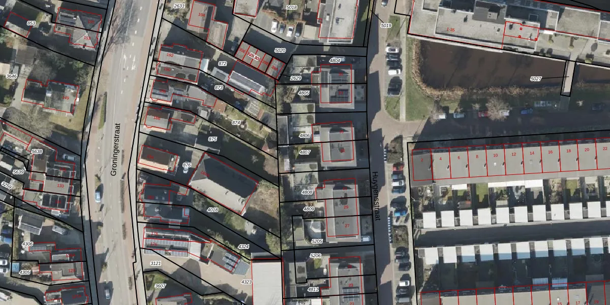 Gebruik de zoekbalk of klik op een perceel om informatie over het perceel te bekijken.