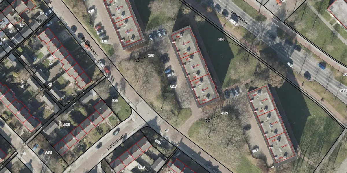 Gebruik de zoekbalk of klik op een perceel om informatie over het perceel te bekijken.