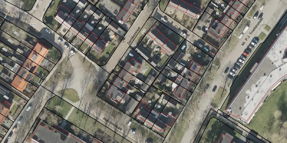 Gebruik de zoekbalk of klik op een perceel om informatie over het perceel te bekijken.