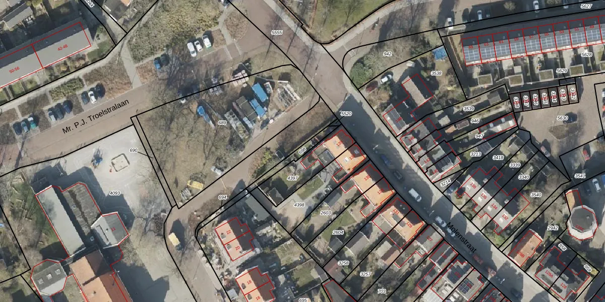 Gebruik de zoekbalk of klik op een perceel om informatie over het perceel te bekijken.
