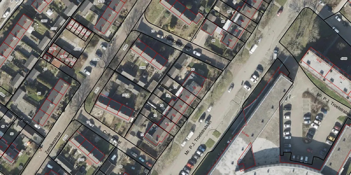 Gebruik de zoekbalk of klik op een perceel om informatie over het perceel te bekijken.