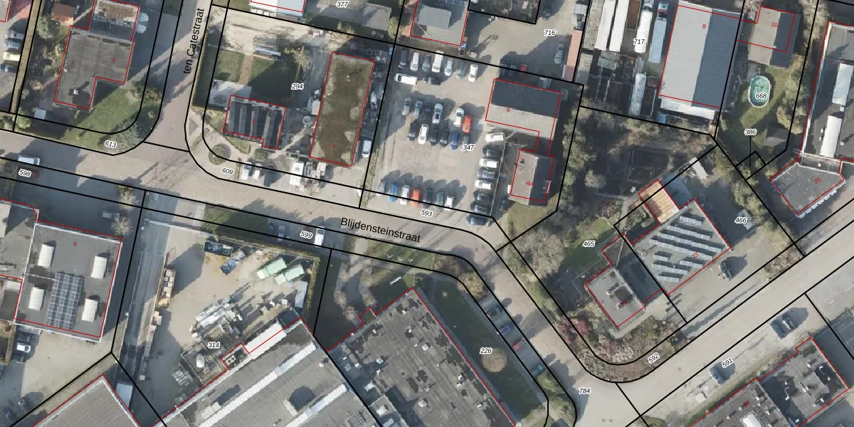 Gebruik de zoekbalk of klik op een perceel om informatie over het perceel te bekijken.