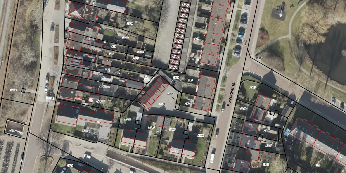 Gebruik de zoekbalk of klik op een perceel om informatie over het perceel te bekijken.