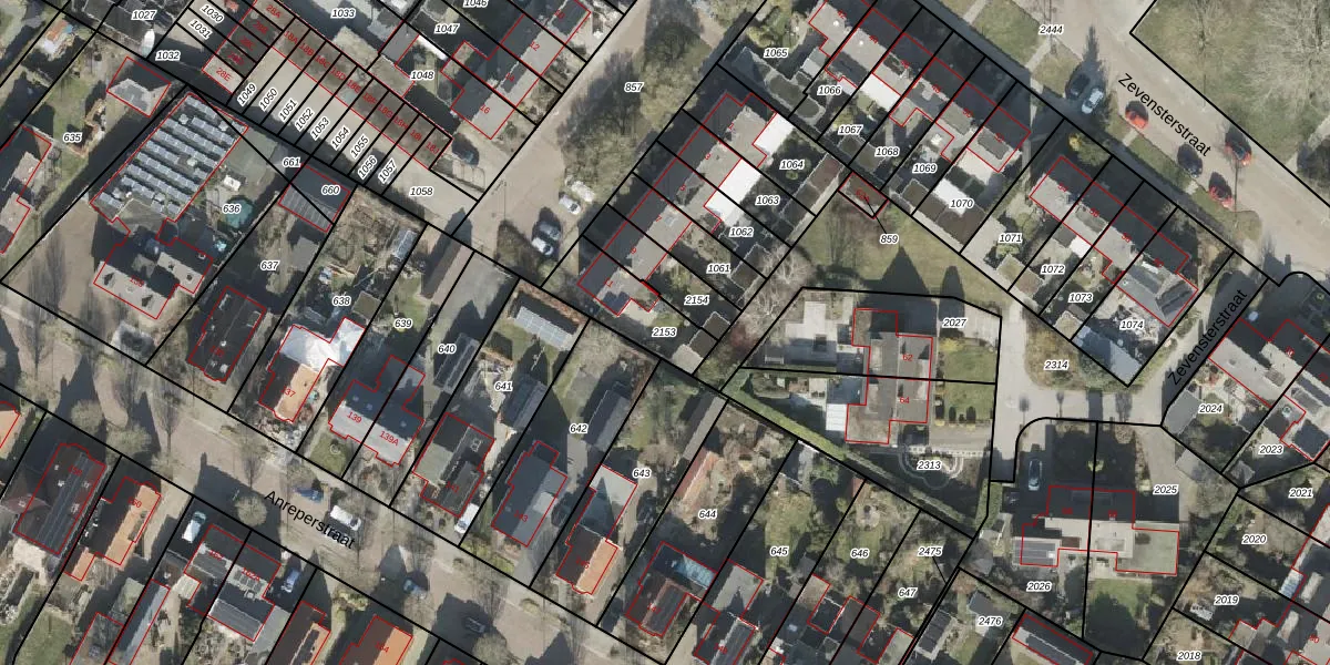 Gebruik de zoekbalk of klik op een perceel om informatie over het perceel te bekijken.