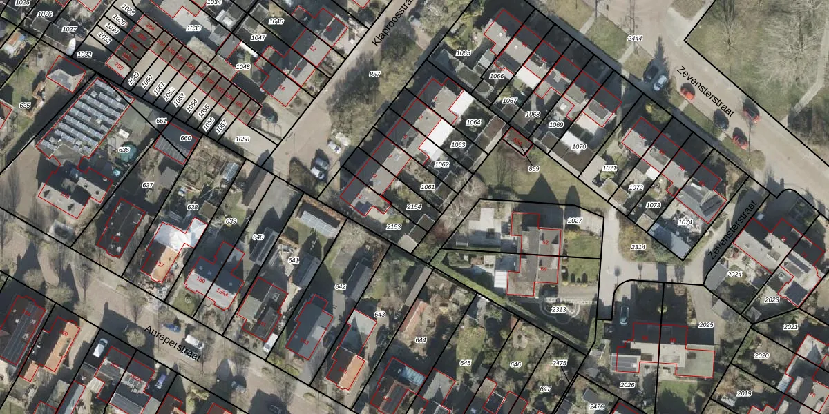 Gebruik de zoekbalk of klik op een perceel om informatie over het perceel te bekijken.