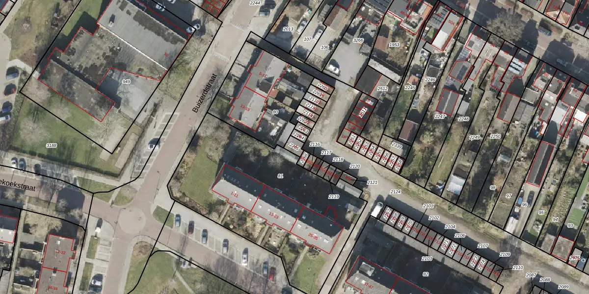 Gebruik de zoekbalk of klik op een perceel om informatie over het perceel te bekijken.