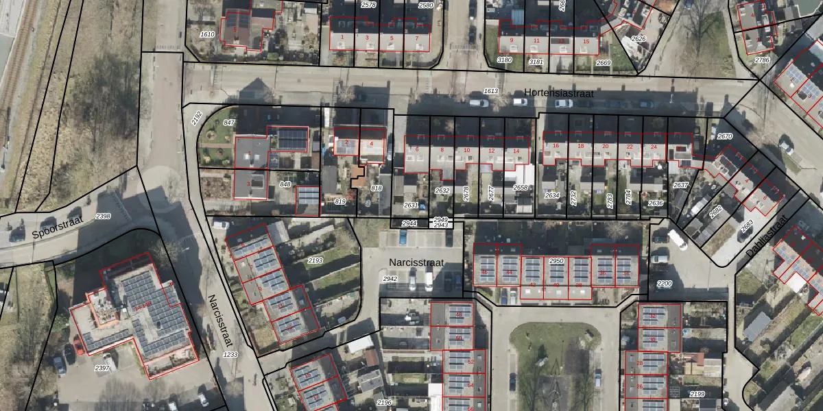 Gebruik de zoekbalk of klik op een perceel om informatie over het perceel te bekijken.